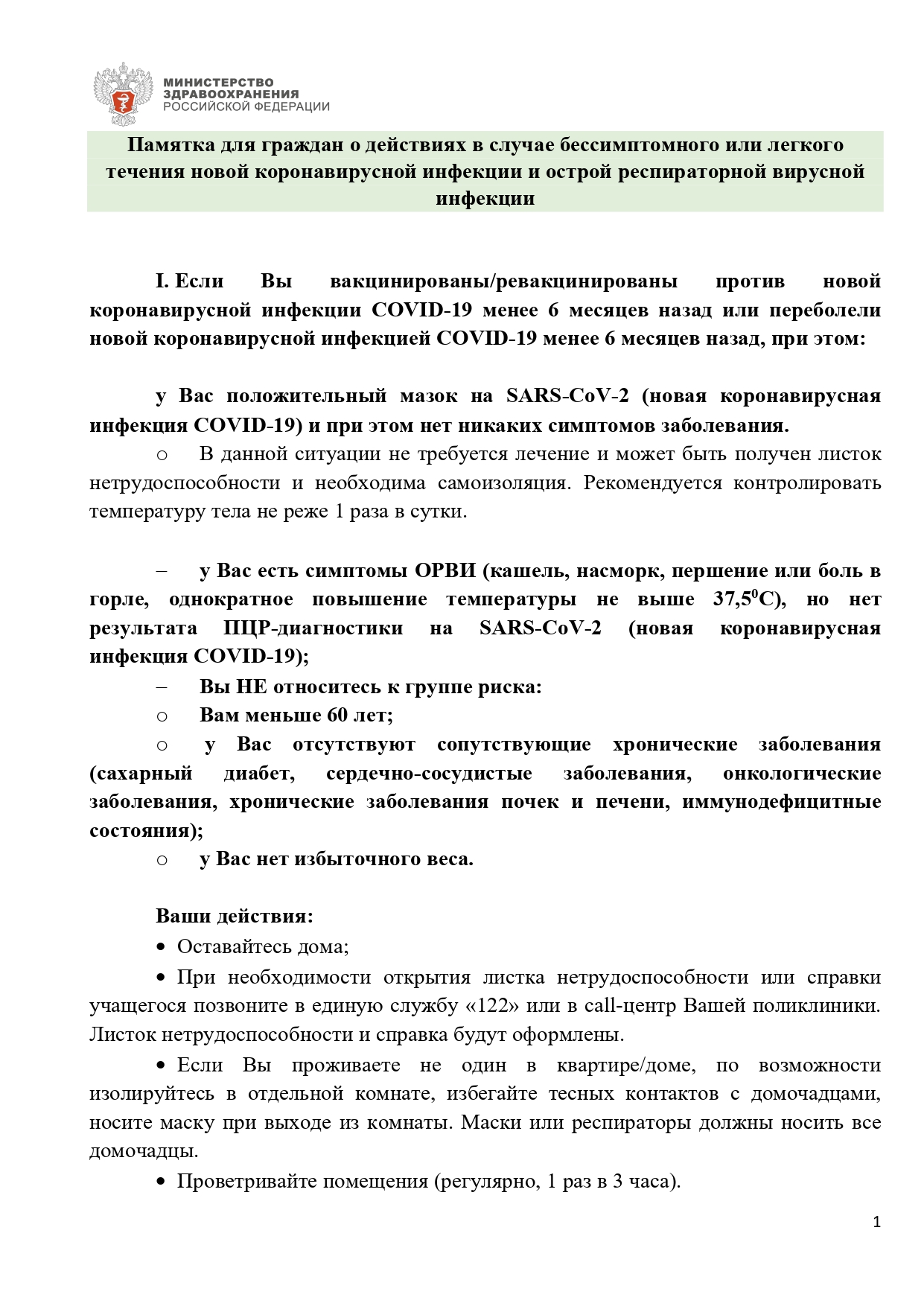 Минздрав России выпустил памятку для граждан на случай заболевания COVID-19 Скачать